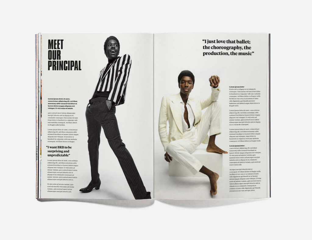 Bigger, bolder, braver, ballet. Dan’s design colleagues translated the irrepressible vitality of Carlos Acosta into graphic energy. The refresh is built around a bold wordmark applied across the full-width of applications. Ballet is represented in the style of a sports brand, accentuating athleticism.