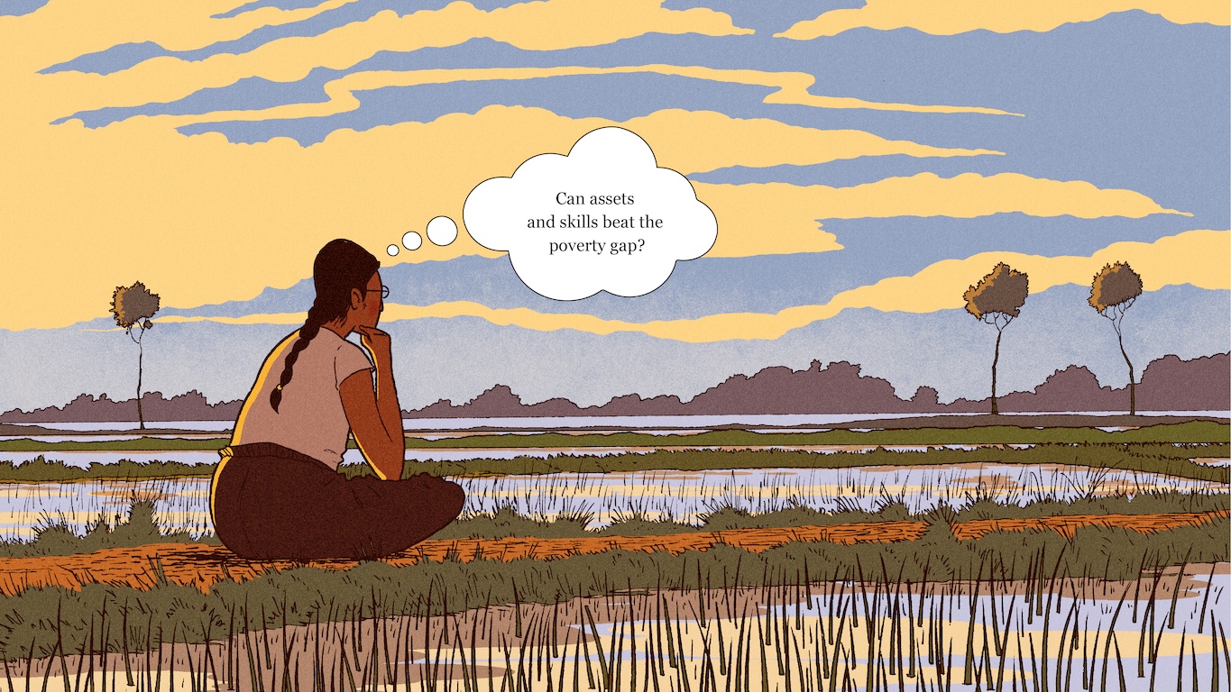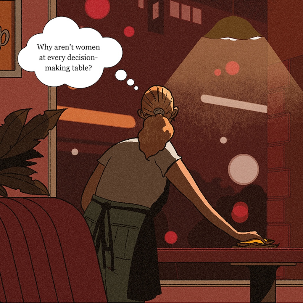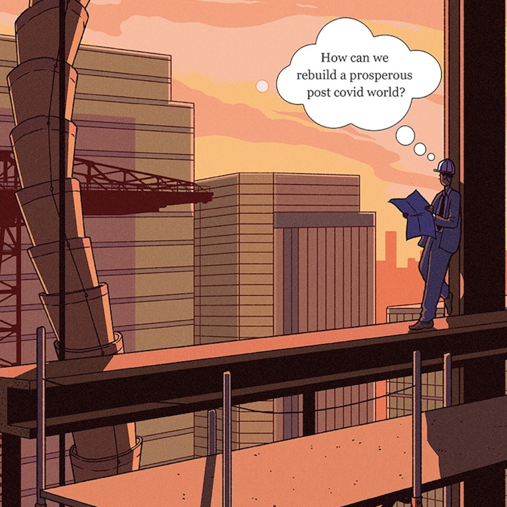 Academia may be serious but everyone loves a cartoon. Illustrator Ruby Fresson’s thoughtful characters in epic landscapes suggest a mix of contemplation and adventure as they grapple with world-shaping questions, from climate change to gender politics. These are answered with stories of real-world impact at LSE.