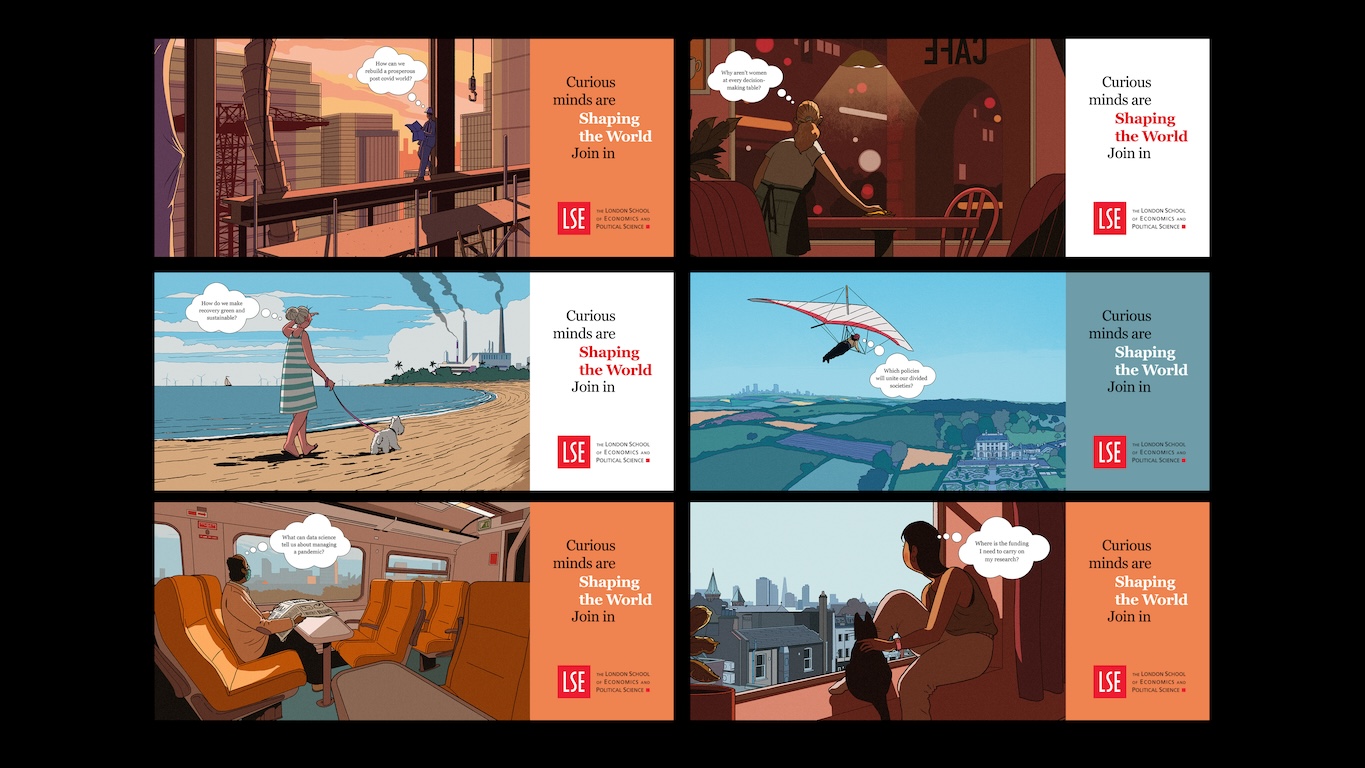 Launch activation for the LSE’s 2030 strategy and public fundraising campaign. An illustration-led solution that features characters deep in thought, representing the extraordinary curiosity that defines the community. The campaign has helped to drive fundraising beyond £223 million.