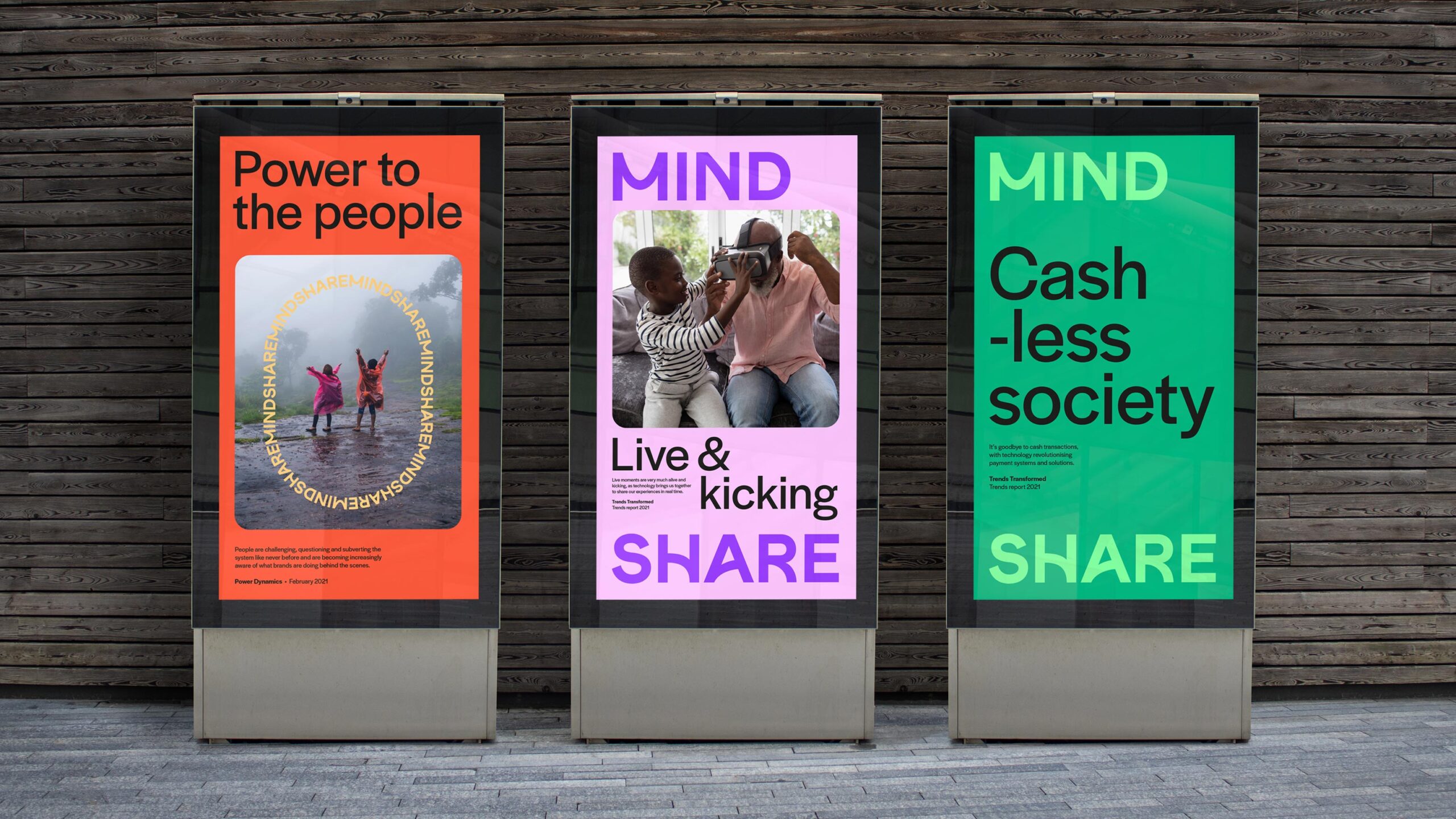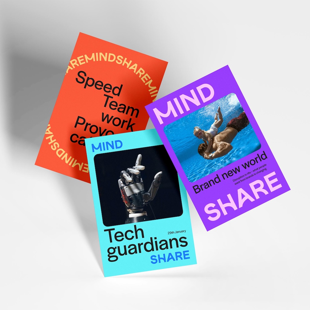 The idea was to activate the Mindshare wordmark, enabling the brand name to open up and literally share. Dan and his NB colleagues created an adaptive identity that behaves the way Mindshare does – in perpetual motion, making things happen.